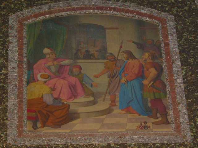 vor dem römischen Landpfleger Pontius-Pilatus. Dieser hält Jesus für unschuldig