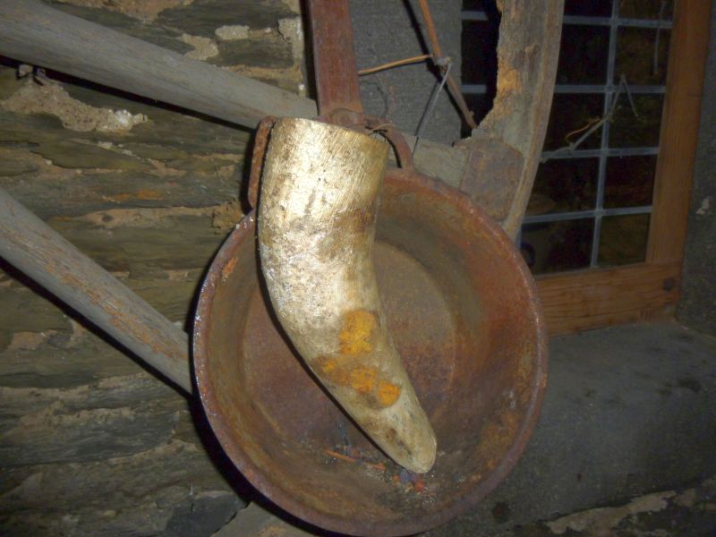 Ein Kuhhorn (oder ähnlich geformtes Blechgefäß)