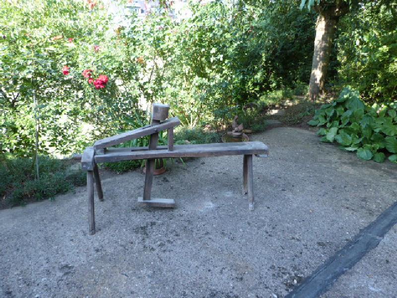Die Schnitzbank aus dem 19. Jh. gehörte früher bei