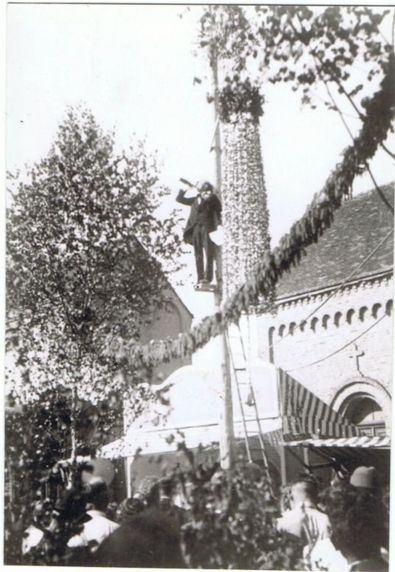 zierten zeitweilig den Kirmesbaum. Im Bild rechts sind darüber