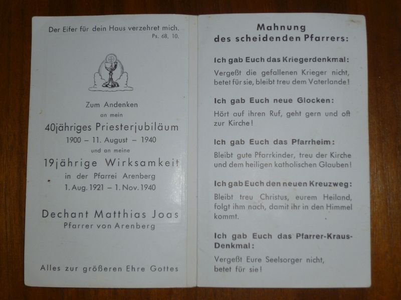 ein Andenkenbildchen zur Einlage in das Gebetbuch seiner Pfarrkinder