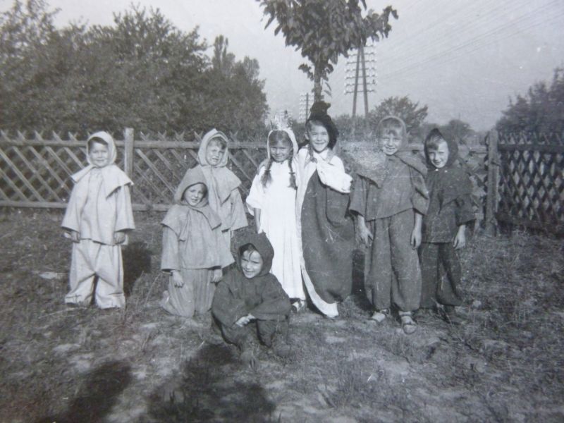 noch in den 1950er/60er Jahren, wobei ein Nachbarjunge in "Messgewändern" aus