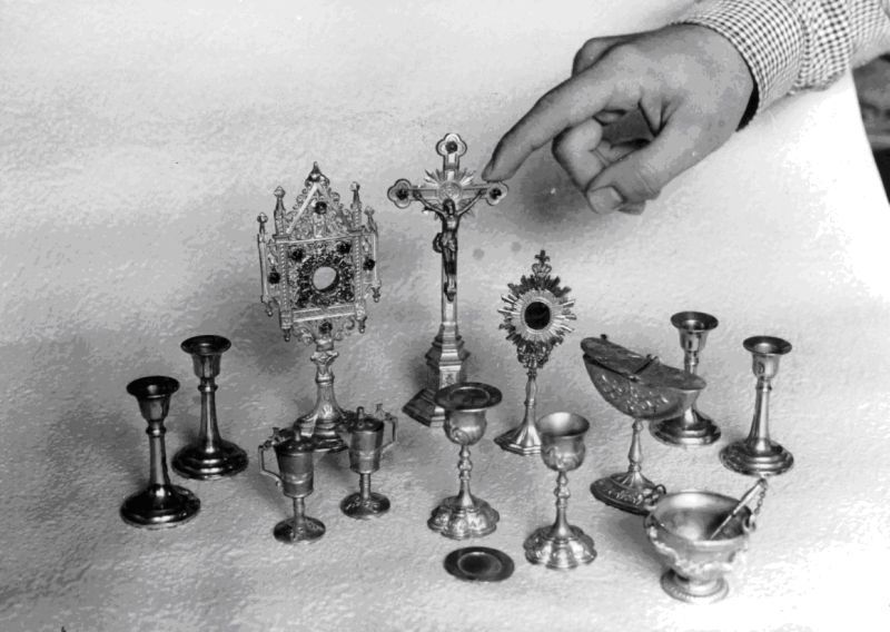 versehentlich herunterfiel, wurde die Patene unter das Kinn gehalten) etc. In der Nachkriegszeit wurden selbstgebastelte Altäre und