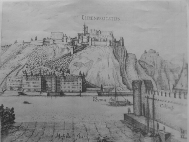 - die Festung Ehrenbreitstein und zu deren Füssen Schloss Philippsburg.