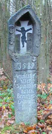 ein alter ca. 1,20 m hoher Bildstock mit der Inschrift 1589