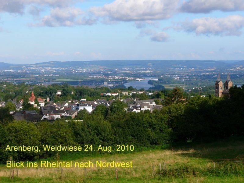 Vor allem aber dient er in steigendem Maße als Erholungsraum für die Menschen, die immer mehr aus den überfüllten Städten hinausstreben in die Natur, um dort Ruhe und Erholung zu finden von dem Lärm und dem hektischen Getriebe der Zeit, um Herz und Sinn wieder auf die unvergänglichen Werte des Lebens ausrichten zu können. Diesem Zweck dienen die Waldungen in der Gemarkung Arenberg im besonderen Maße. Auf vielen Wegen lassen sie sich durchwandern und bieten dank ihrer abwechslungsreichen Gestaltung und ihrer Höhenlage schönste Blicke in die nähere und weitere Umgebung. So schweift das Auge von der Weidwiese Foto oder vom Hannarsch Foto aus weithin über das Rheintal bis nach Andernach, Foto umfaßt die Berge der Eifel und die Ausläufer des Westerwaldes, selbst einen Teil des Siebengebirges Foto kann man bei klarem Wetter im Hintergrund des Wiedbachtales erblicken, wahrlich eine einmalige Schau. Für den, der dem Walde seine Geheimnisse abzulauschen versteht, gibt er auch den Blick frei auf Reh und Hase, Fuchs und Dachs, Marder und Wiesel, die neben den zahlreichen Vogelarten ihre Wohnungen im Walde haben. Ihnen ihr Lebensrecht und ihre Heimat zu erhalten ist Verpflichtung aller, sowohl der Waldeigentümer wie derer, die ihn durchwandern oder durch seine Existenz Nutzen von ihm haben. Denn alles, was da lebt, sei es Mensch, Tier oder Pflanze, kommt aus der Hand des allmächtigen Schöpfers, der noch lange zu unser aller Nutzen und Frommen die Wälder der Heimat erhalten möge.