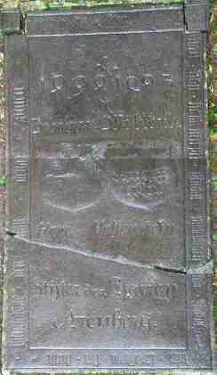 deutlich darauf hin. Der Grabstein ist mit den Wappen der Familien