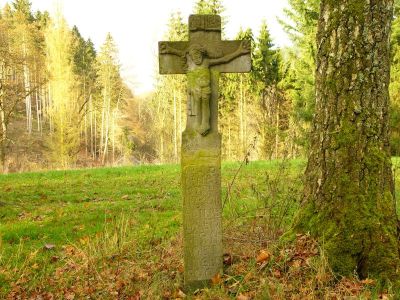 steht das von den Arenberger Jägern gestiftete Wegkreuz. Es war vordem