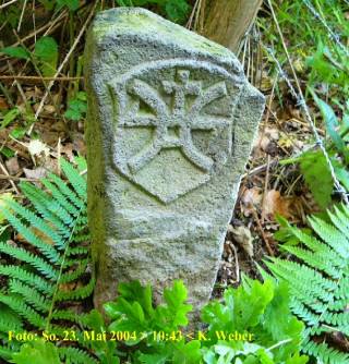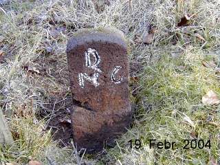 alte Grenzstein wurde im Febr. 2004 unter einer Hecke gefunden