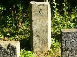 der Arenberger Gemarkung. Mehrere Grenzsteine mit den Initialen