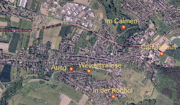südlich der Weikertswiese und oberhalb des Caritasgeländes im Hang (siehe Übersicht).